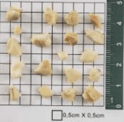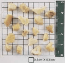 As granuladas são obtidas a partir da trituração progressiva dos pedaços, resultando em diferentes granulações: